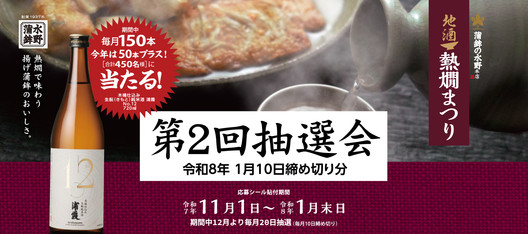 次回の締め切りは、令和8年2月10日(火)消印となっております。今年度の「地酒熱燗まつり」の最終締め切りとなっておりますので、ご応募忘れのないようお気をつけください。